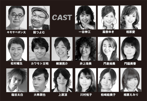 | キモサベポン太 弱つよむ 松村曜生 カワモト文明 柳瀬亮輔 塩谷太白 大串潤也 上原涼 一谷伸江 風祭ゆき 相原愛 井上珠美 門倉尚美 門脇美香 川村悦子 柏崎絵美子 相原えみり |